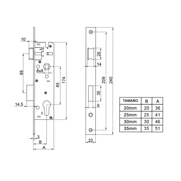 | Medidas de Frente: 22 mm x 240 mm |