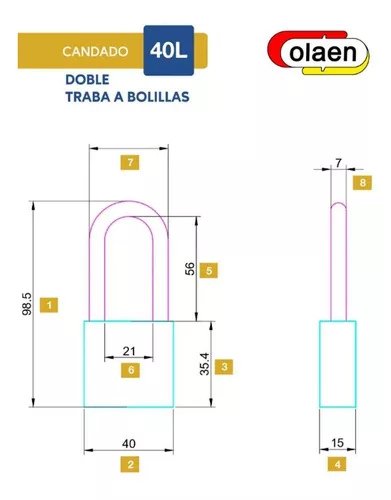 Candado Olaen doble traba, Aro largo de 40mm