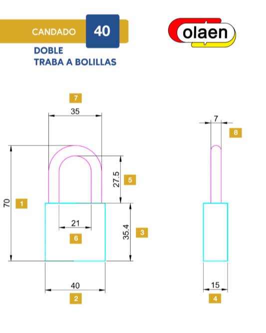 Candado Olaen, doble traba de 40mm