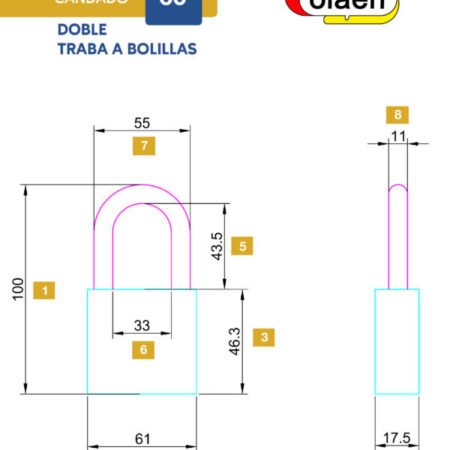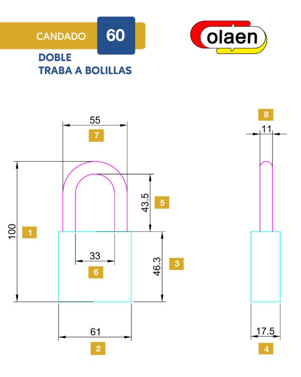 Candado Olaen, doble traba de 60mm