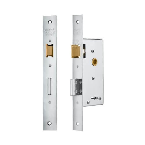 De 2x26x214 mm, con 4 placas de hierro de 1.5 mm, pasador rectangular, picaporte entero reversible, caja de 13x64x126 mm, chapa de 1.25 mm. ZINCADA AZUL.