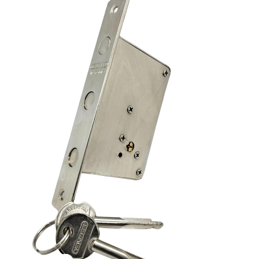 Cerrojo para embutir. Cilindro cruz. Con 3 barras de 12.7mm de diámetro.